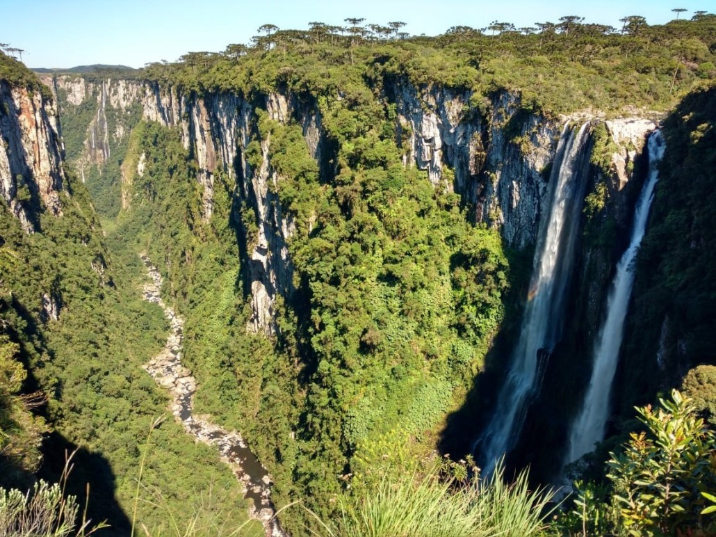 Após o café seguiremos em direção ao PARQUE NACIONAL DOS APARADOS DA SERRA-O Parque é uma unidade de conservação Brasileira de Proteção Integral da Natureza localizado na SERRA GERAL encampando vários CÂNIOS com 13 mil hectares, que formam a divisa natural entre RS e SC.