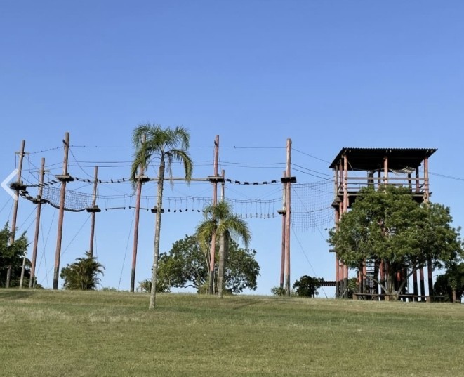 ATIVIDADES: Pracinha com mini parede de escalada, rede de cordas, ponte suspensa, corrida de carrinho de lomba, circuito aéreo ultra radical (á partir de 15 anos) , trilhas ecológicas, fazendinha com animais domésticos, passeio á cavalo conduzido (puxado), bateria de esportes radicais com 2 andares (á partir dos 8 anos); ordenha, tirolesa (á partir dos 12 anos), passeio trator, serpentário, pracinhas temáticas, viveiro de imersão com araras, tucanos, papagaios, prainha com banho de acude, banho de piscina e muito mais