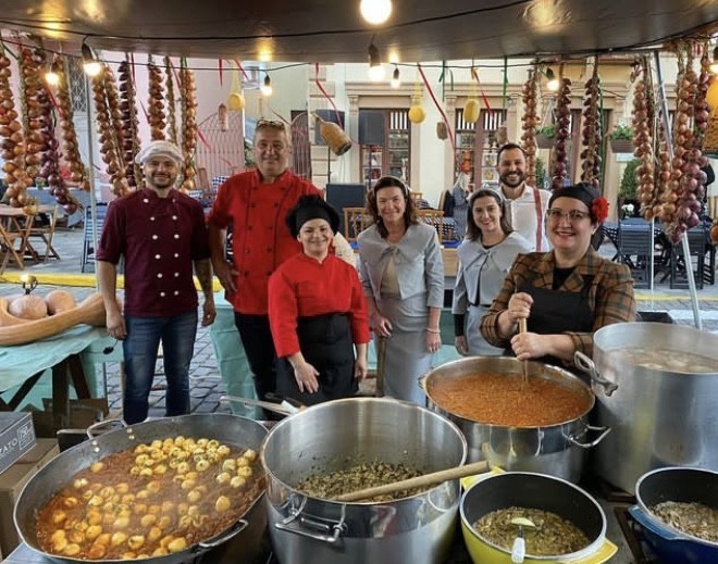 GASTRONÔMIA- Os restaurantes e bares da cidade trazem pratos que remetem a diferentes períodos da história. São criados menus exclusivos para a ocasião, resgatando receitas tradicionais e combinando ingredientes típicos da Serra Gaúcha.Além dos pratos especiais, food trucks e estandes espalhados pelo evento oferecem petiscos e doces inspirados em décadas passadas. Entre as opções, é possível encontrar desde releituras de receitas européias, até clássicos da cozinha brasileira.