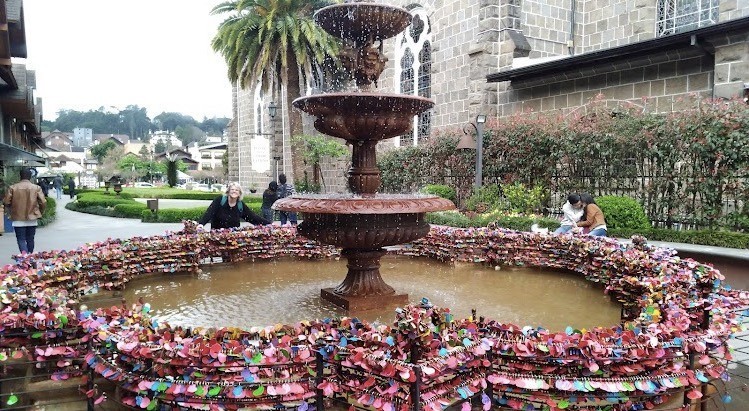 11:30hs Visita a FONTE DO AMOR ETERNO –Inspirada na famosa FONTE DE FONTANA DI TREVI, na Itália a Fonte do Amor Eterno reunindo milhares de apaixonados num dos mais belos pontos turísticos da cidade de Gramado-Se você for com sua cara metade já leve o seu cadeado-para deixar com seus nomes, representando a união eterna ao estilo das PONTES DE PARIS E OUTRAS CIDADES DO MUNDO.