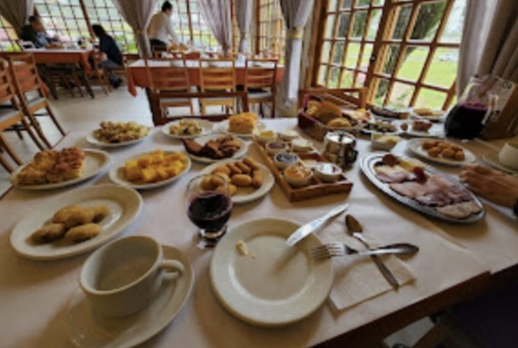 12:00hs ALMOÇO CAFÉ COLONIAL DE GRAMADO-INCLUSO–Não incluso bebidas não servidas-SALGADOS-Linguiça fervida, Pastel Presunto e Queijo, Polenta frita, Bolinho de Queijo, Bolo de Ricota, Bolo de Torta Fria, Quiabo e cebola, Frango á milanesa, Salame, Morcella branca e preta, Pão de Milho, Pão Francês, Pão Sovado, Pão de Queijo, Pão de Centeio, Torta Fria, Legumes e Atum, Queijo Colonial, Croquete de Frango, Lombo á Milanesa, Queijo de Porco, Copa, Pepino, Mortadela de frango, Presunto-DOCES-Torta de chocolate, Chocolate, Sagu, Torta Holandêsa, Pêssego em Calda, Creme de Baunilha Geléias, Marta Rocha, Pastel de Chocolate, Bolo de Amendoim, Bolo de Chocolate, Bolo de Cenoura, Torta Floresta Negra, Bolo de Banana, Bolo de Laranja, Gelatinas, Torta de Maça, Torta de Morango, Torta de Limão, Torta de Prestígio, Cuca, Torta de Nozes, Wafles, Rocambole. BEBIDAS– Cafés, Chás, Chocolate Quente, Suco de Uva, Vinho Branco Seco, Vinho Tinto Suave.