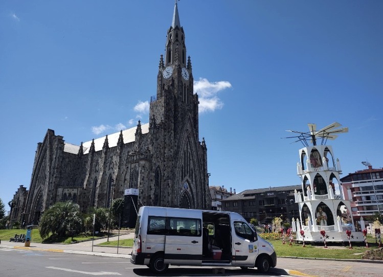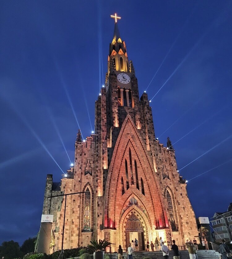 15:30hs VISITA AO CENTRO DE CANELA CATEDRAL DE PEDRA- A Igreja Matriz de Nossa Senhora de Lourdes, conhecida popularmente como Catedral de Pedra, embora, na verdade, não seja uma catedral,por Paróquia de Canela, ou simplesmente Igreja Matriz, é uma igreja católica.Sua construção iniciou-se em 1857 e foi finalizada apenas em 1987 . Em estilo neogótico inglês, a igreja possui uma torre com 65 metros de altura, e um carrilhão de 12 sinos de bronze, chamado Carrilhão da Independência, que foi fabricado pela fundição Giácomo Crespi, na Itália, e instalado em 1972.