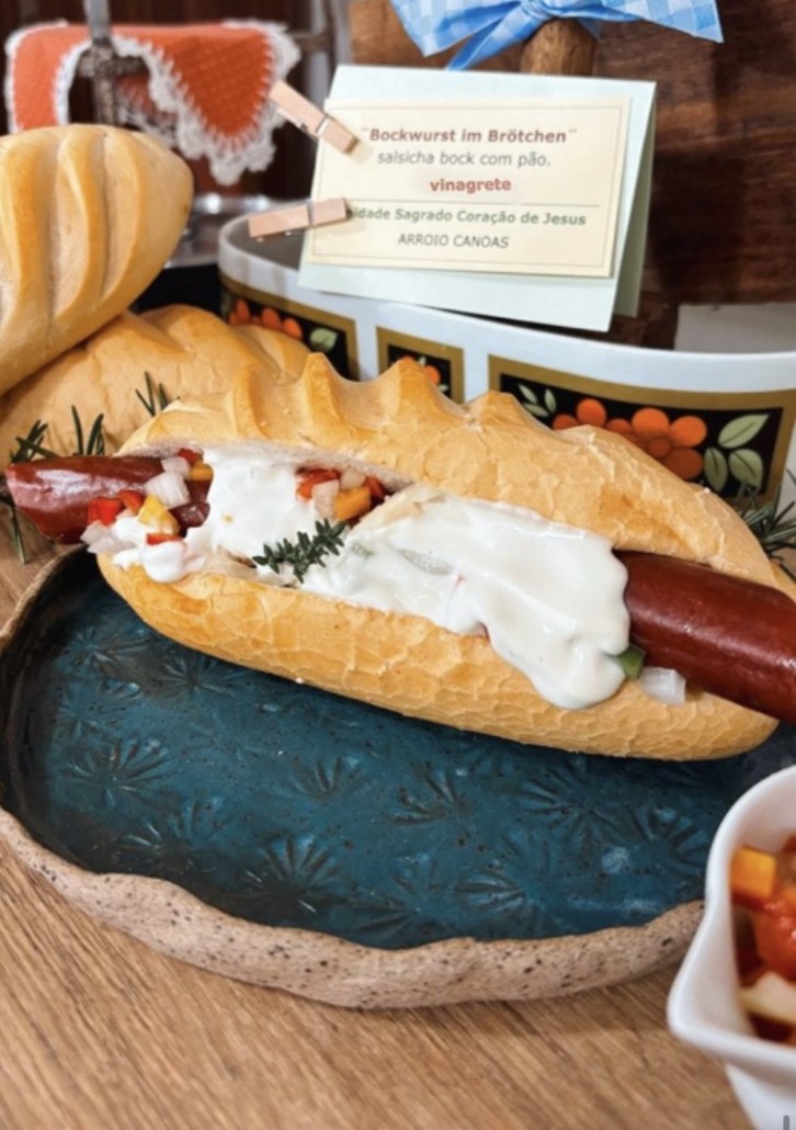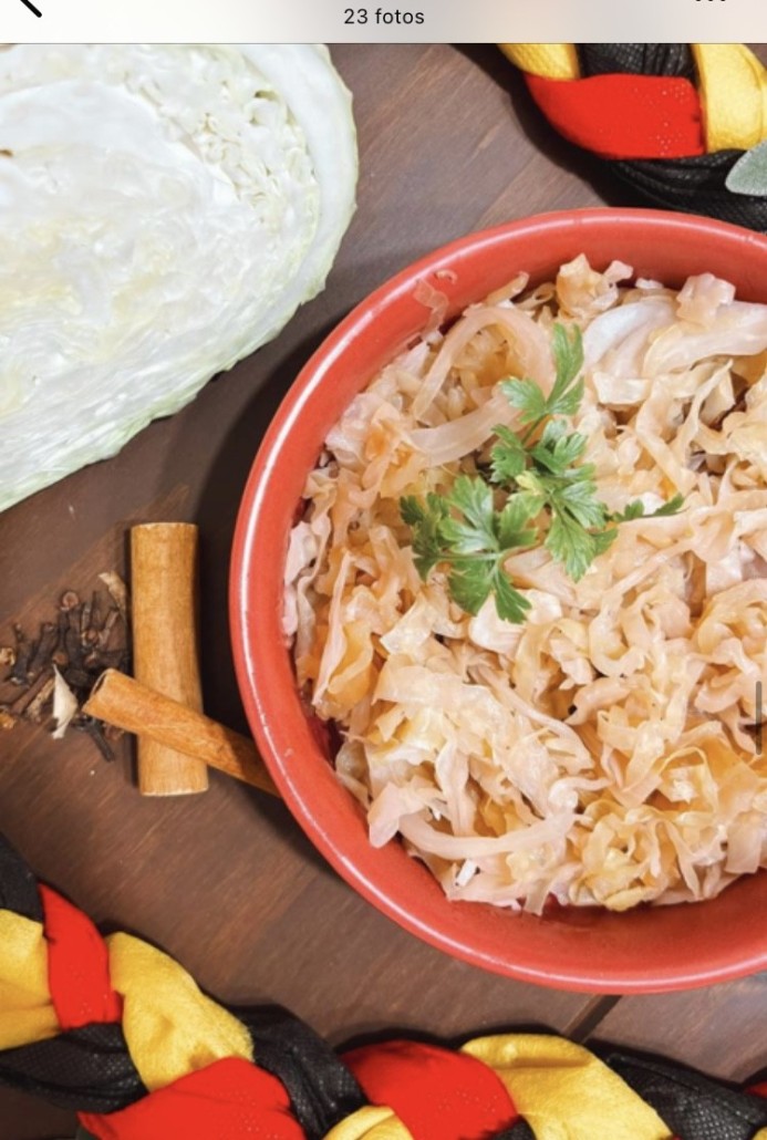 TÍPICO ALEMÃO: Linguiça Assada, Lingüiça Cozida, Costelinha de Porco Defumada, Coxa de Frango á Passarinho, Bolinho de Carne, Bolinho de Batata, Salada de Batata, Chucrute, Pão com Lingüiça Bock com Molho de Vinagrete e Picles, Pão Caseiro, Pão de Milho, Cuca Alemã, Rosca, Nata, Mel Schmier de Pão Caseiro, Pão de Milho, Cuca Alemã, Rosca, Nata,Mel, Schmier de Queijo, Schmier de Cana,Melado de Cana, Batata Doce, Pretzel, Rabanete, Ovo em Conserva, Pepino em Conserva, Sagu e Ceme